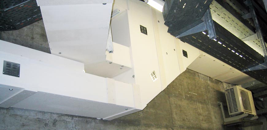 Le conduit d'installation pour câbles et tuyaux protège les autres compartiments coupe-feu des effets d'un incendie à l'intérieur du conduit. Pour la protection contre l'incendie, en plus de la version à quatre faces, une version à un, deux ou trois côtés est également possible (en particulier pour la rénovation) et ceci avec reconnaissance AEAI (VKF).